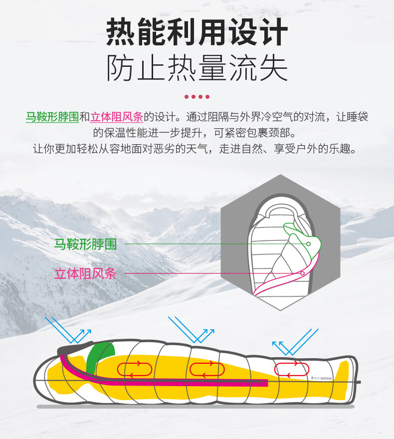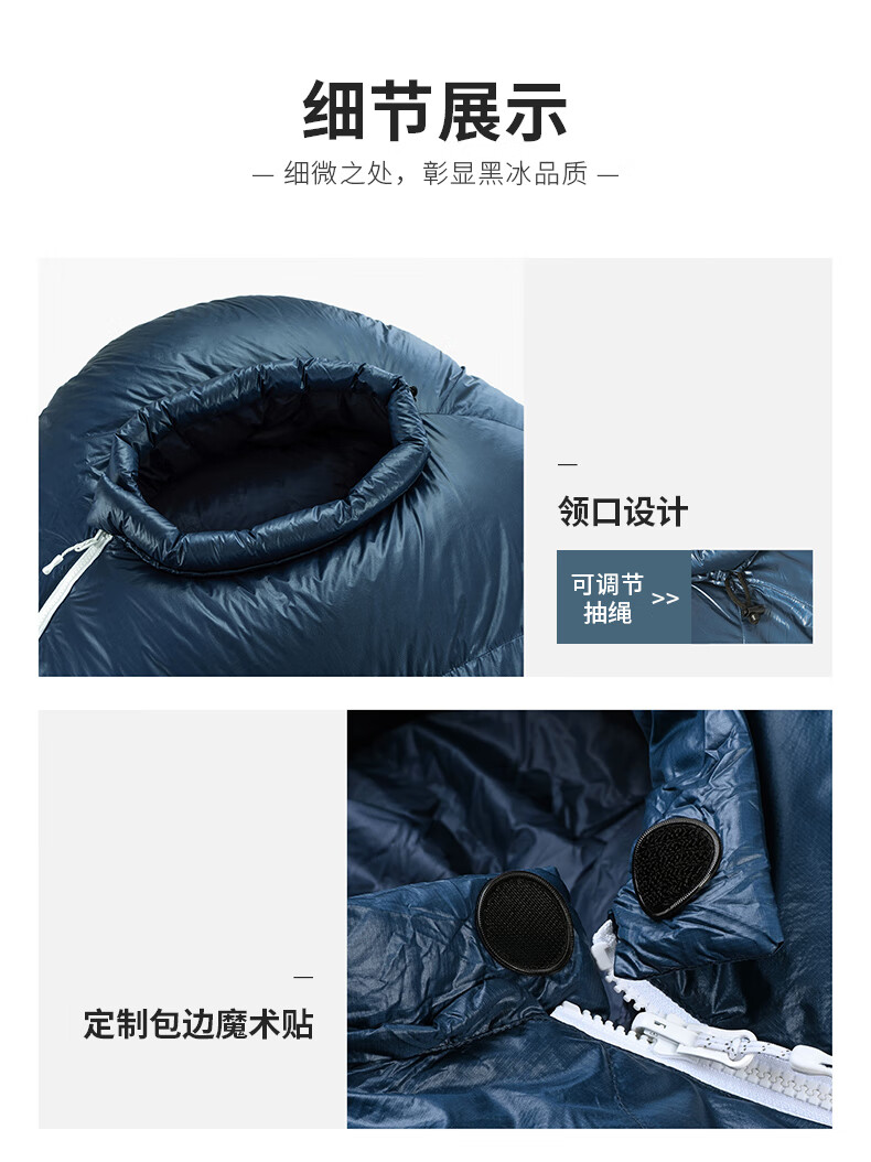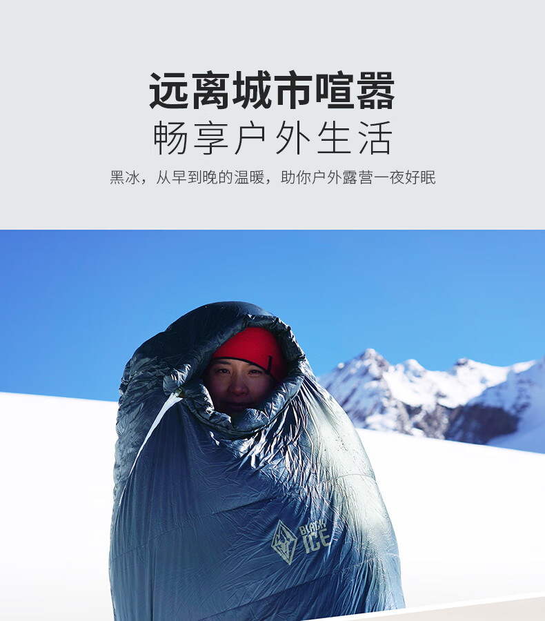 家人们,这款黑冰鹅绒睡袋绝了!填充高品质鹅绒,保暖性超棒,睡在里面像被暖阳包裹。而且它很轻便,收纳不占地方。做工精细,缝线牢固,闭眼入不亏!