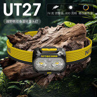 奈特科尔ut27 800L轻量化聚/泛双光源800流明越野赛事兼容AAA头灯 UT27 2024【黑色-标准版】