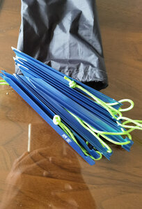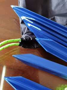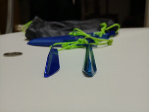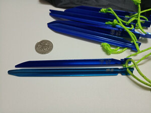 东西很轻,所以也不会非常厚实,可以比较后面两张图,跟云雀的原配地钉做比较,原装的是三棱型的。但是感觉强度还是够用的。在野外弄丢了两根原装的地钉,买这个补充一下,东西还是不错的。