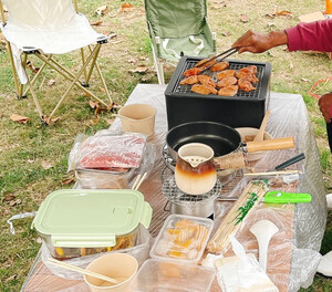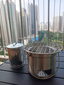 小炉子挺不错,适合果木碳或酒精块,有烤盘,还没用