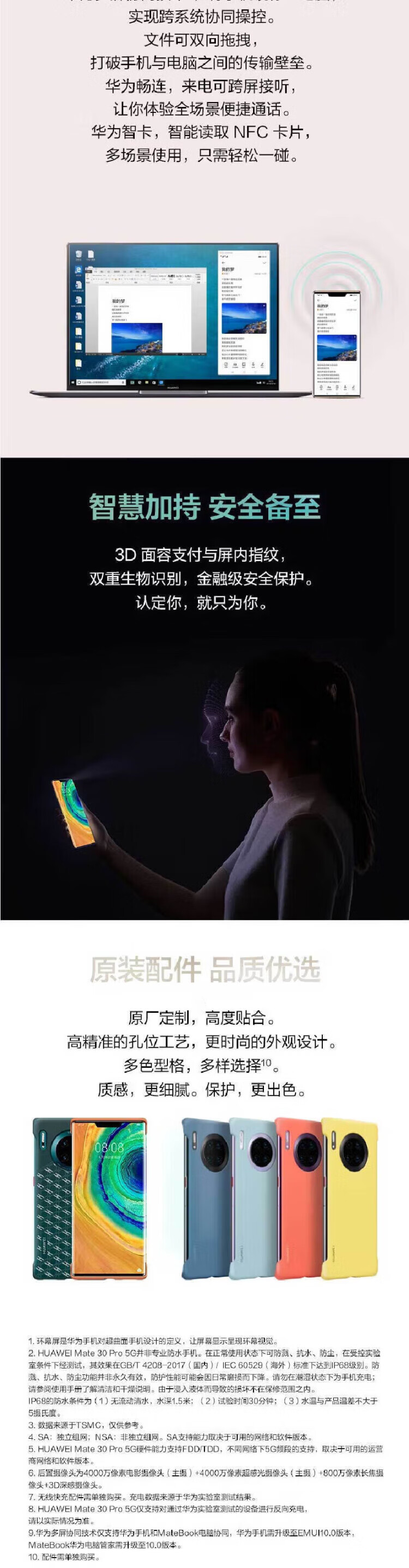 华为(HUAWEI)Huawei/华为 Mate 30 Pro 5G曲面屏麒麟990原装机无线充电双系统 罗兰紫 8GB+128GB