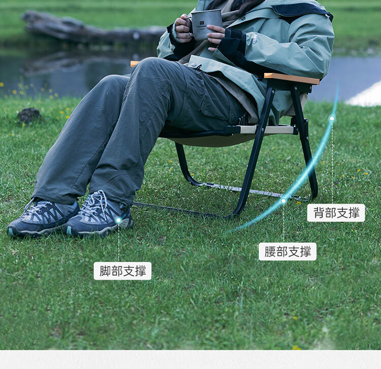 Naturehike挪客 户外折叠躺椅 午休轻便沙滩休闲椅露营钓鱼写生铝合金靠背椅 卡其色