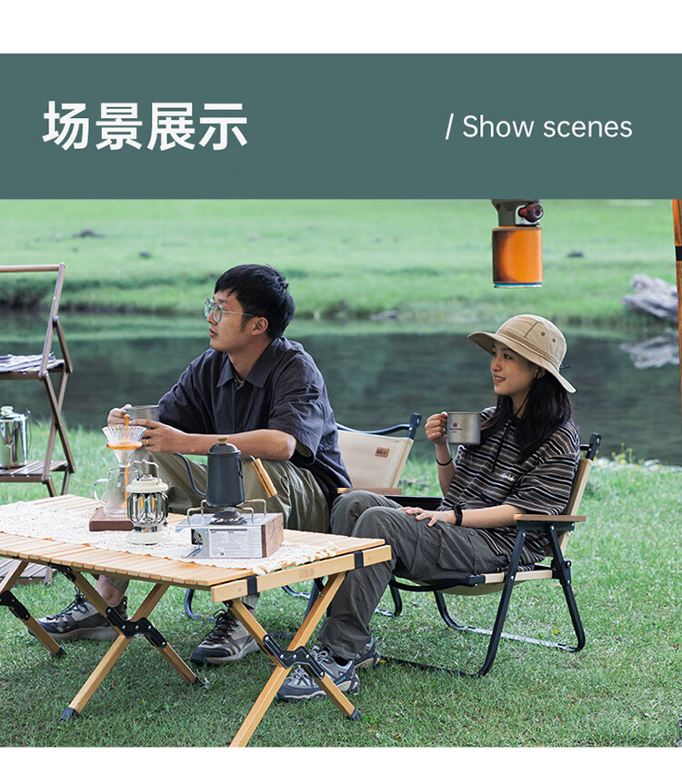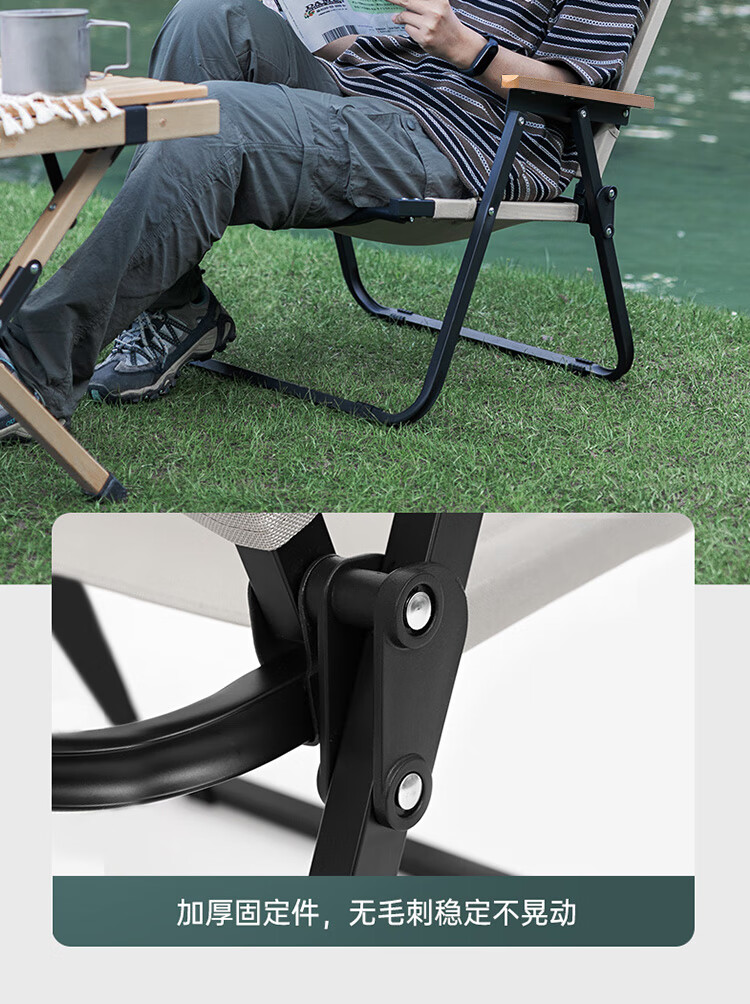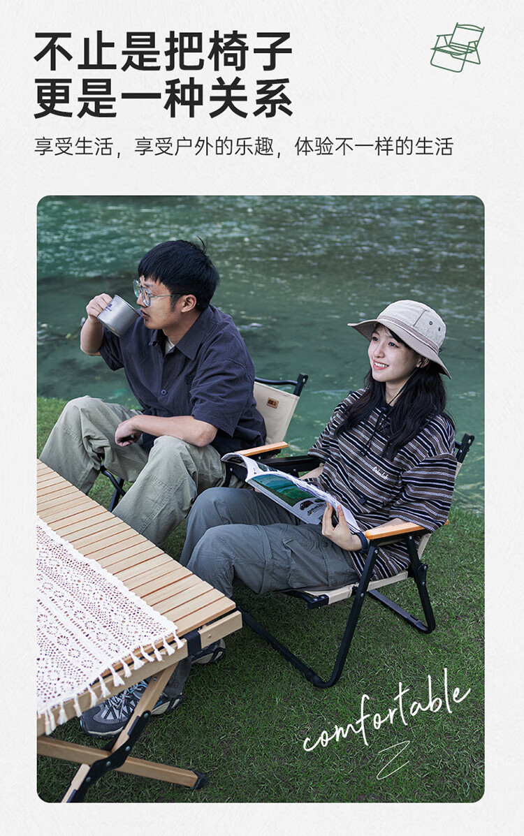 这几天天气好赶紧入手了两把椅子带出去露营用,店家发货很快,一拿到我就带出来用了,有一说一椅子材质蛮好的,坐着很结实,做工也很好,扶手很光滑,没有毛刺