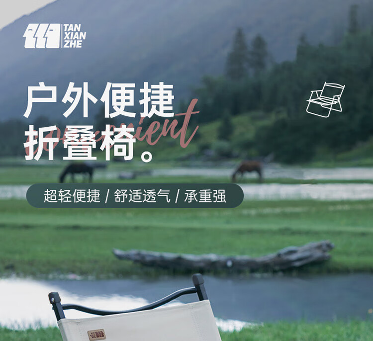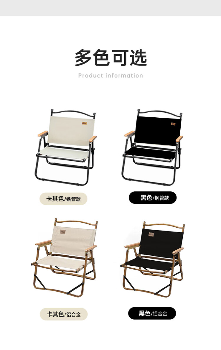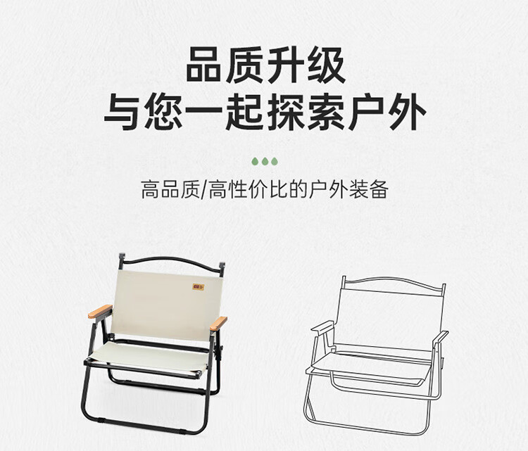 探险者(TAN XIAN ZHE) 户外折叠椅子克米特椅便携超轻露营野餐椅沙滩椅钓鱼椅子 石墨黑支架【加粗】卡其色