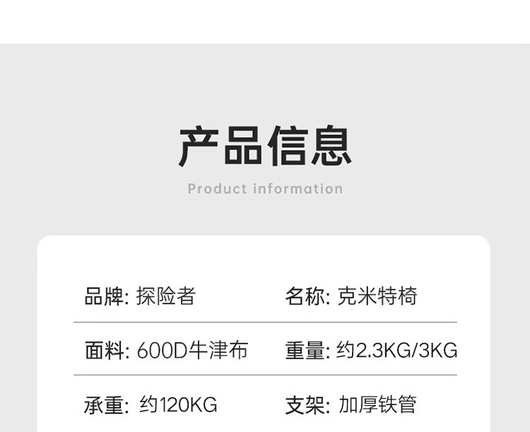 探险者(TAN XIAN ZHE)户外折叠椅克米特椅露营折叠椅子月亮椅便捷桌子野外钓鱼椅 【双层牛津布】卡其色-大号