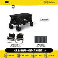 探险者露营车折叠推车户外露营儿童小推车营地车拉年货小拖车聚拢型推车 200L 极光黑宽轮+桌板+克米特椅*2
