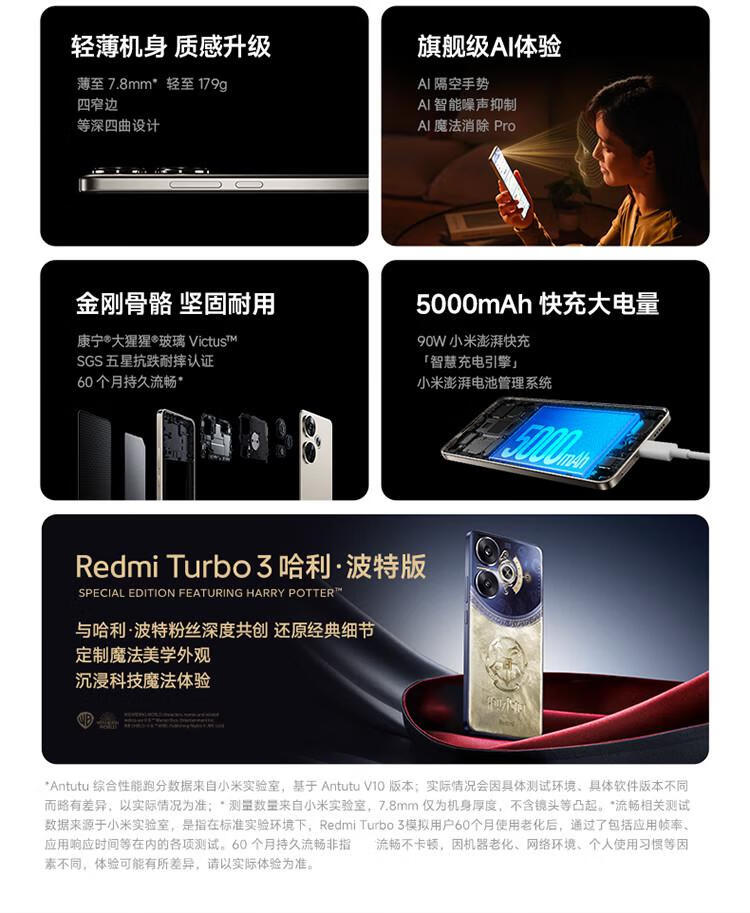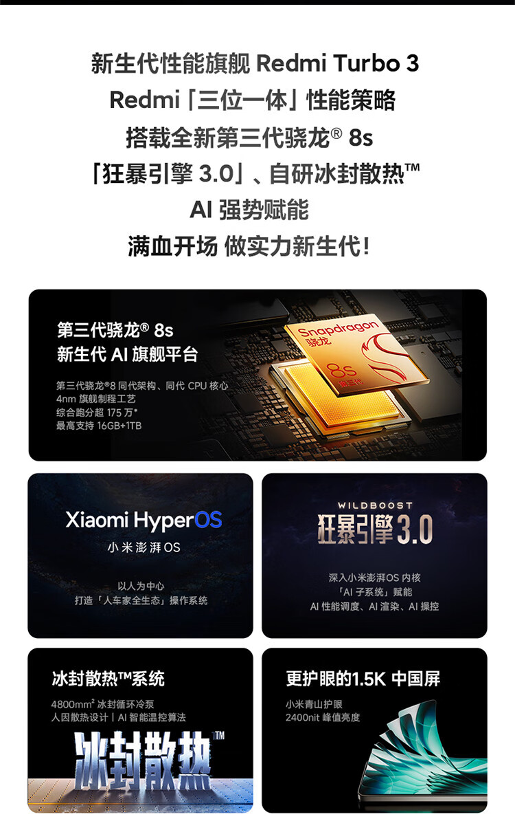 小米 15Pro 16GB+1TB 骁龙8至尊版 链接选购 】Redmi Turbo 3 第三代骁龙8s 小米澎湃OS 新品5G手机 墨晶 12GB+512GB 官方标配