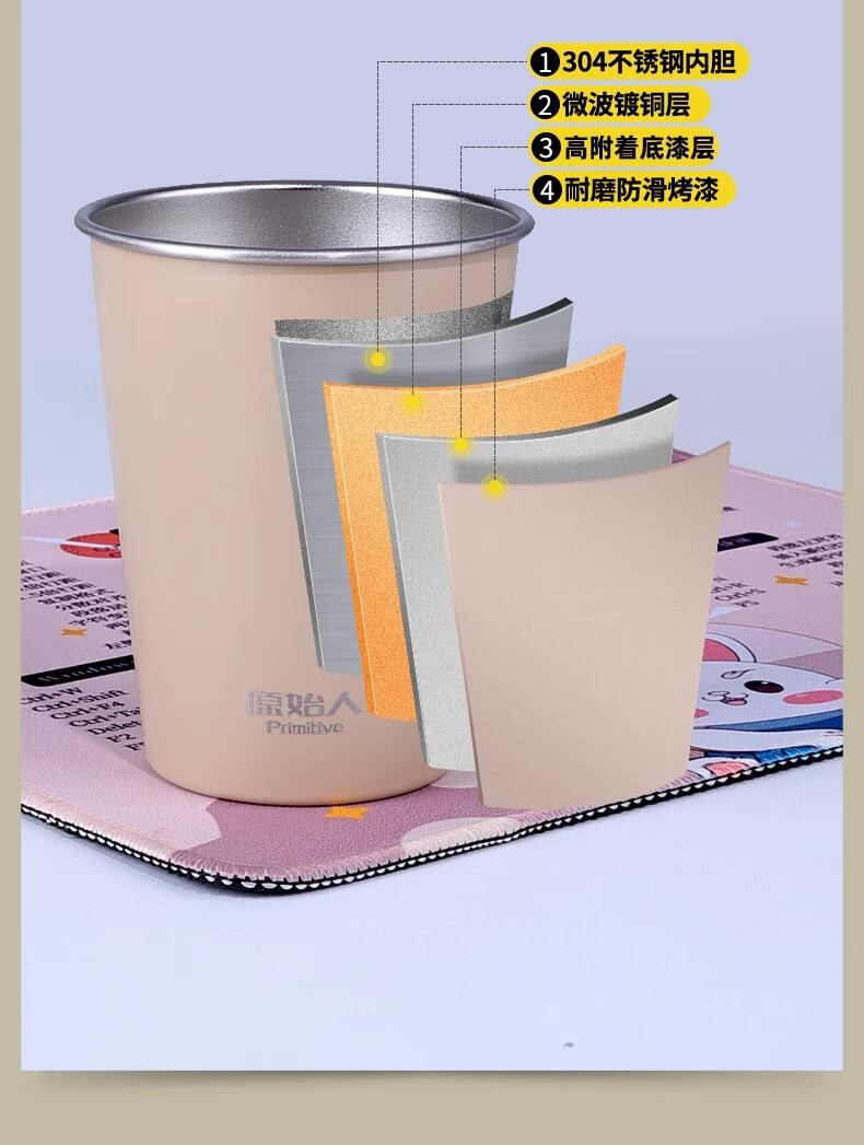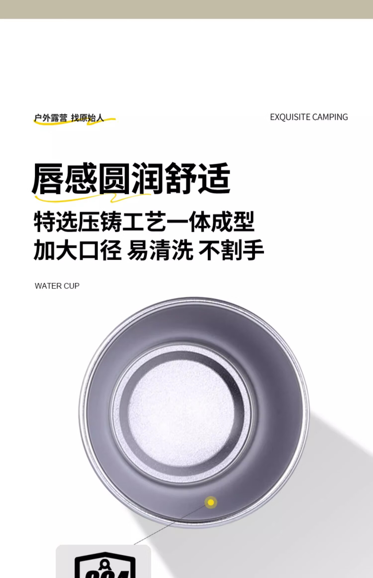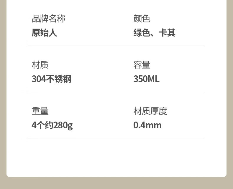 原始人户外露营杯子折叠便携水杯野营304套杯不锈钢茶杯水壶套装 【卡其】304不锈钢套杯4只装