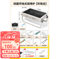 原始人烧烤炉家用烧烤架无烟户外便携式围炉煮茶室内工具用品炉子 珍珠白【304烤网】15件套
