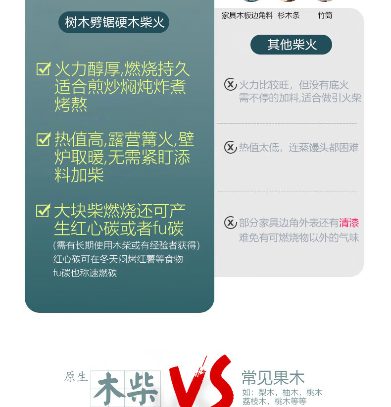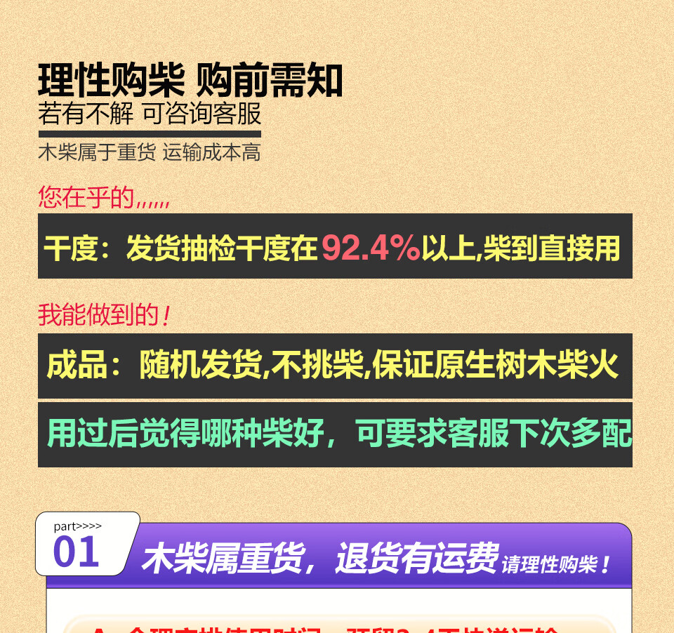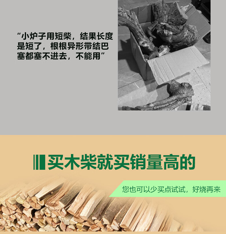 我买了好几家对比了一下,就是你家的好用,点起来好点,柴火干还干净,好用,烧起来热量特别高,只有你家的木柴才把炉子烧的热腾腾!我很喜欢,今年就买你家的了推荐