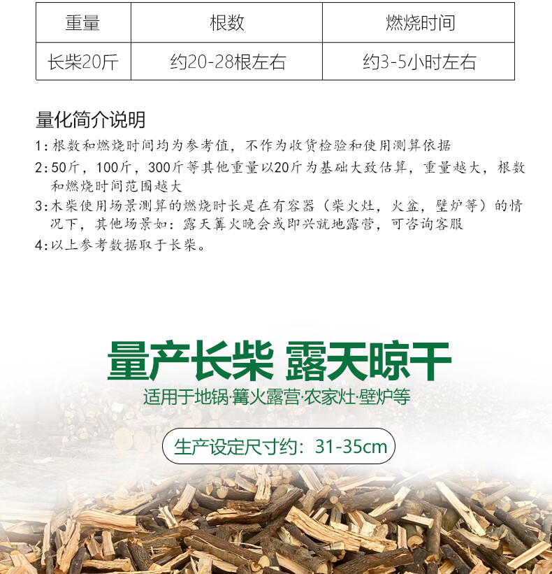 4份20斤量是足够的,包装很厉害👍👍👍👍👍,柴很干也很干净,学生放假了,出去好好玩玩, 重量大小:够份量