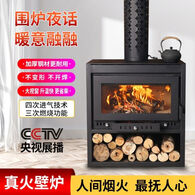 壁炉真火木柴家用别墅农村室内冬季取暖器燃木柴烧柴冬天柴火炉 50型带烧水口
