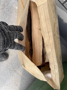 很诚心的商家,下手600斤,一共25袋,分量很足,这才收拾好10袋,都这么多了,摸上去很干,木柴也很扎实,好柴