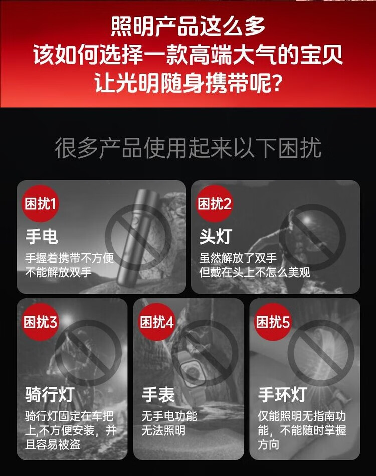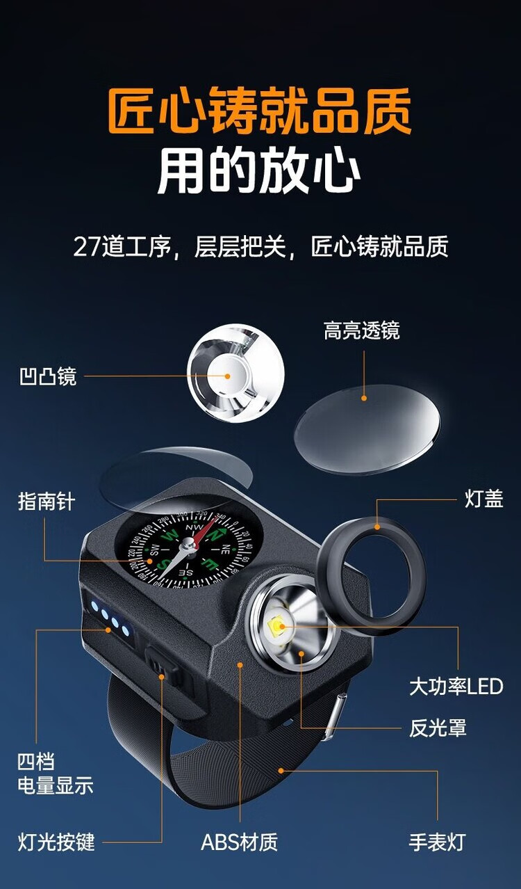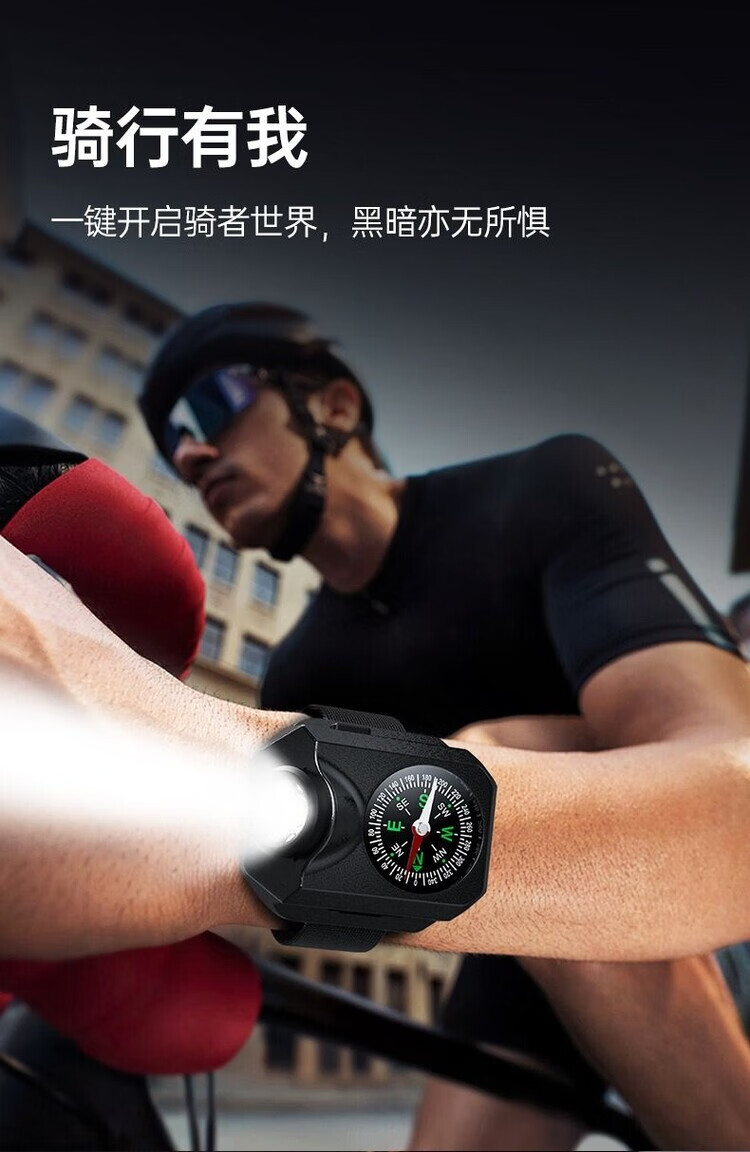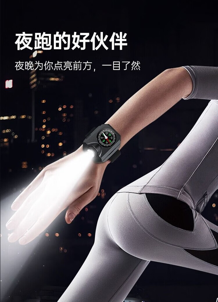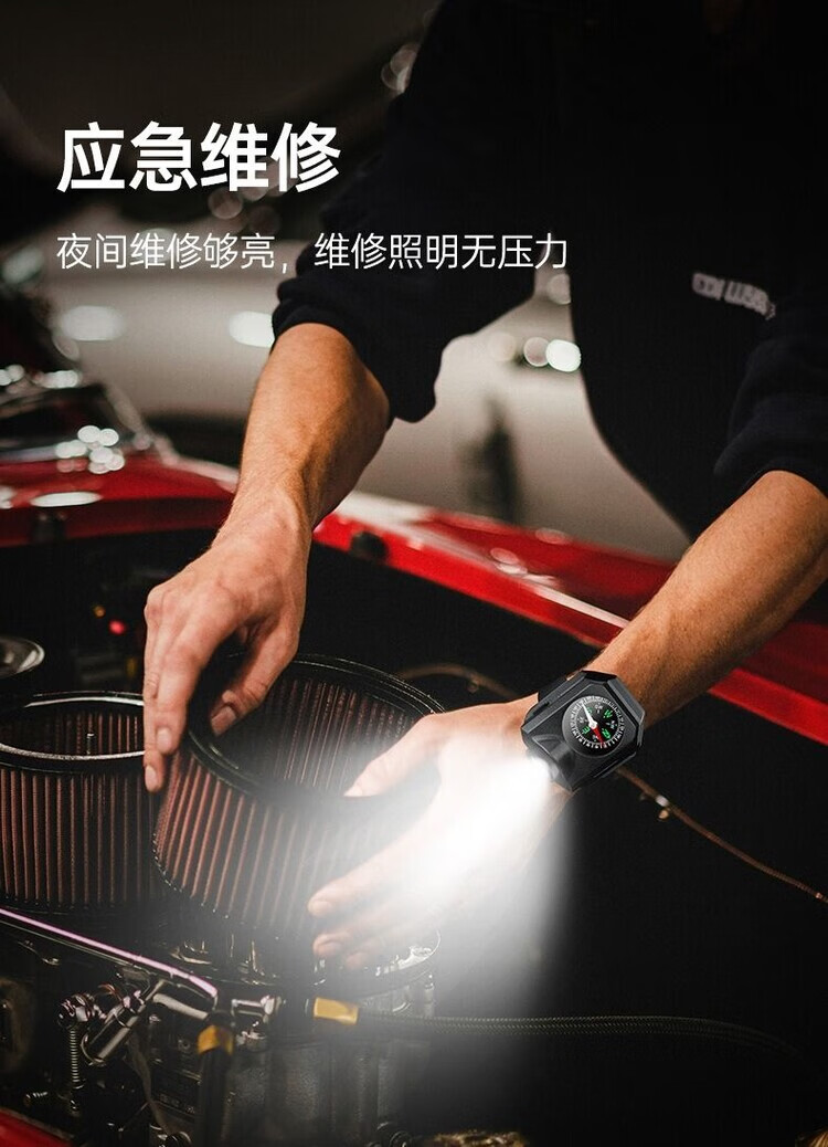阿尤布手腕灯手电筒腕带式手电内置充电强光亮手电筒户外照明手电筒 套餐1_单灯礼盒装(含充电线)