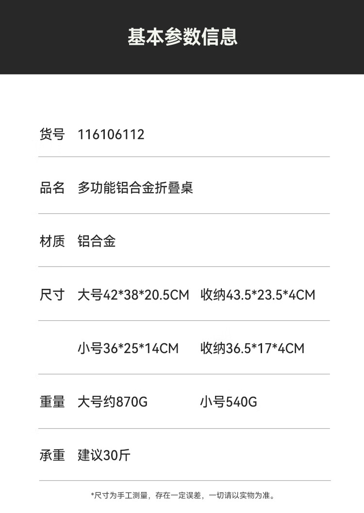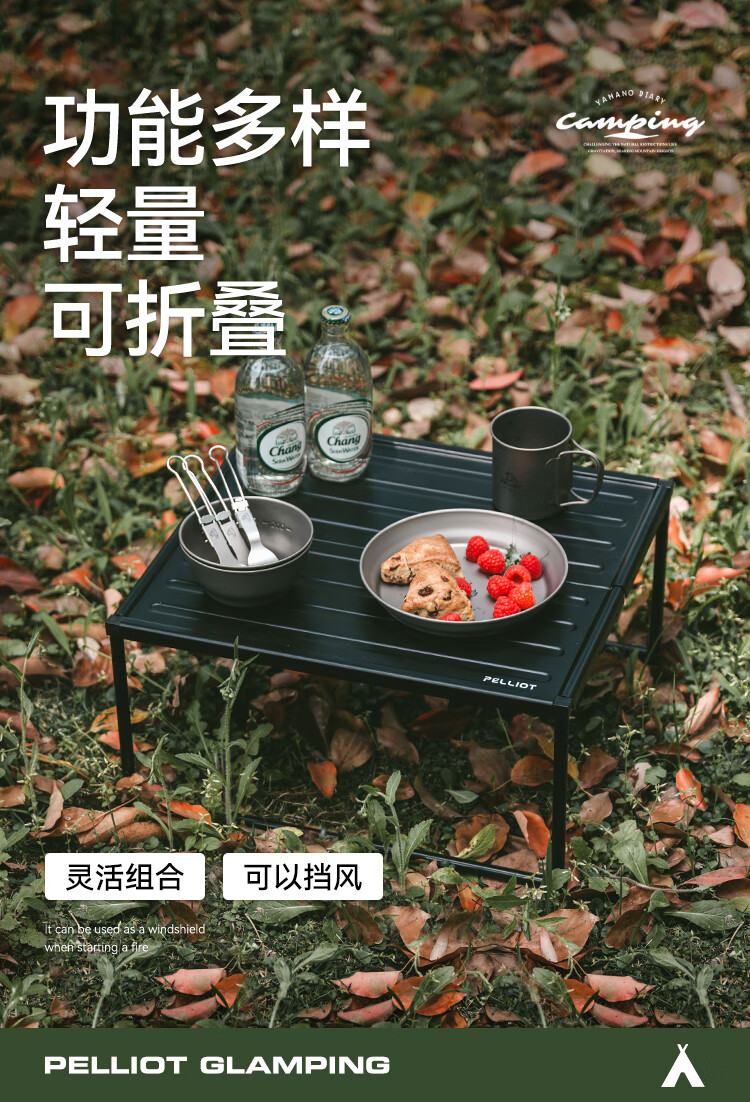 伯希和(Pelliot)户外便携折叠桌露营野餐家用多功能烧烤桌子铝合金野炊装备 小号