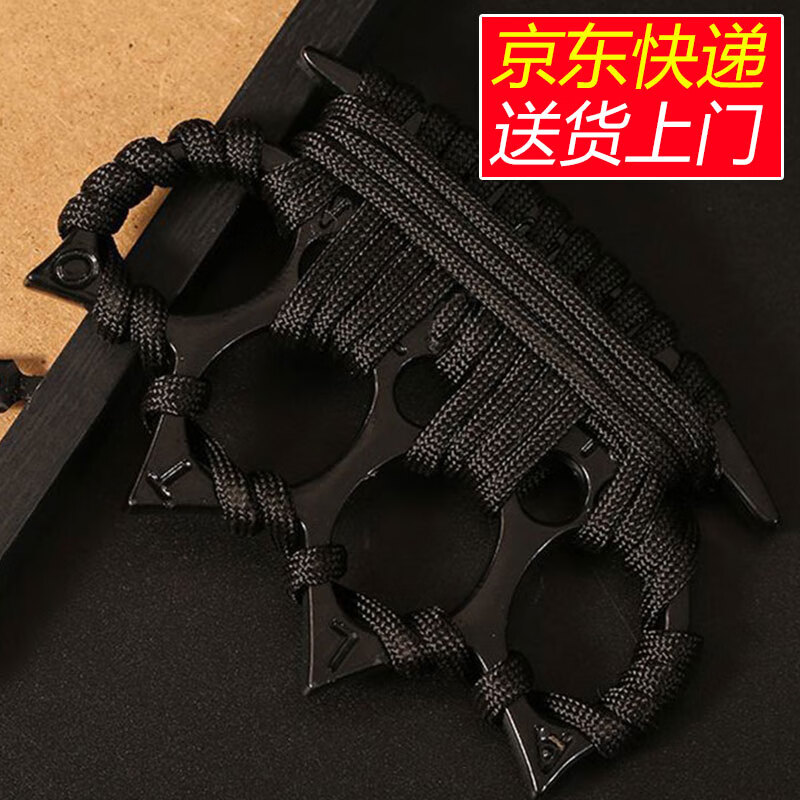 指虎加厚合金高硬度指虎防身用品破窗器四指大号手撑子自卫装备 指虎-黑色【牛头缠绳】