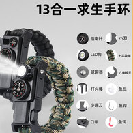 星舵户外生存手环求生手链多功能防身装备伞绳13合1编织野外工具ZP 漫暮黑【基础款/十二合一】腕带
