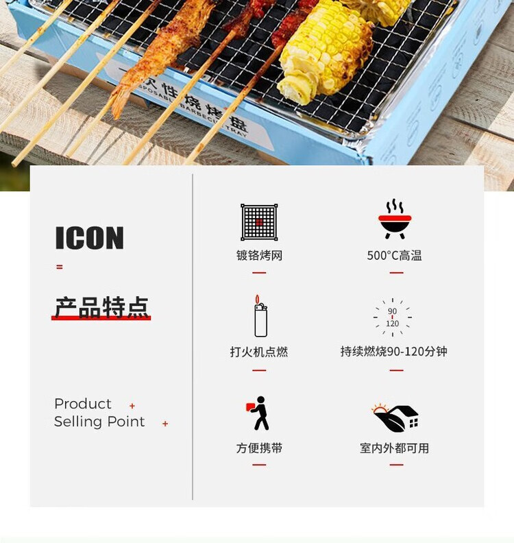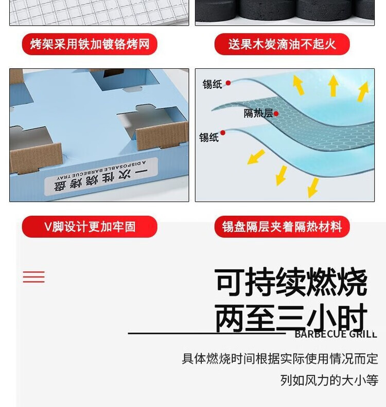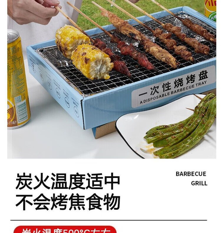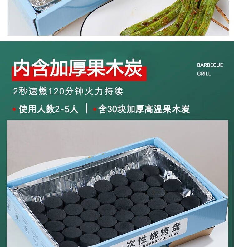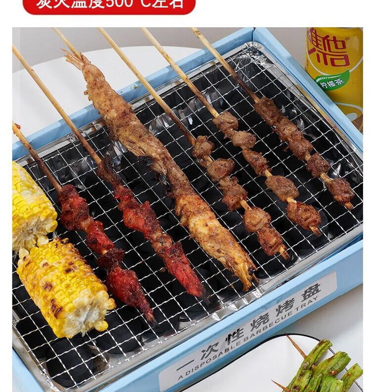 语森忆一次性烧烤炉淄博网红不锈钢便携式送果木炭不粘烤网 果木 50粒