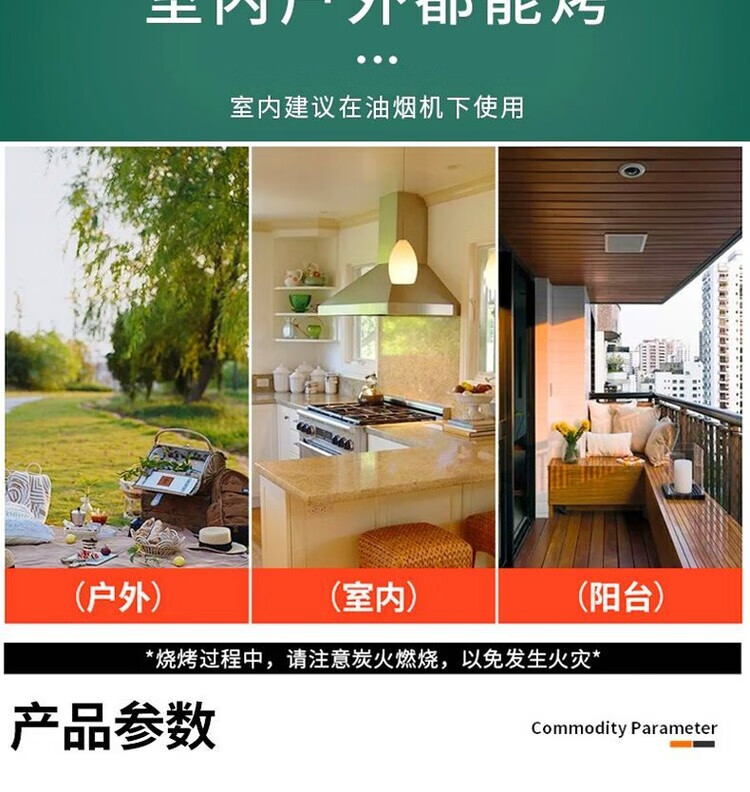 一次性烧烤炉户外野餐无烟家用碳烤炉露营烧烤架木炭烤肉炉室内 橘黄色双层50碳一次性烧烤炉 32*22*5.5