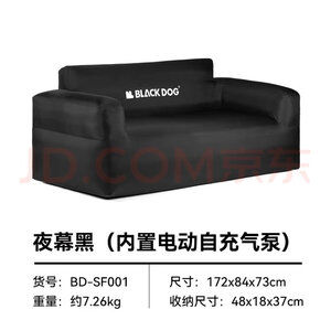 black dog户外双人充气沙发床便携露营野营气垫床家用懒人 夜幕黑 双人充气沙发(带气泵)