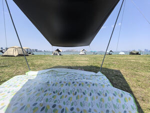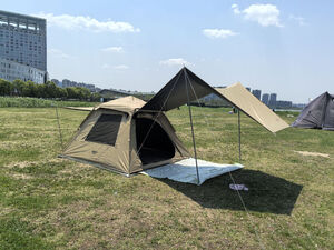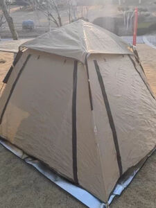 帐篷支起来非常简单快速,三分钟搞定,天幕也就是第一次需要绳结打扣,之后把绳子收好就可以非常快速完成了,帐内空间大,四个大人躺平完全没问题,坐着可以更多人,天幕也完全够移用