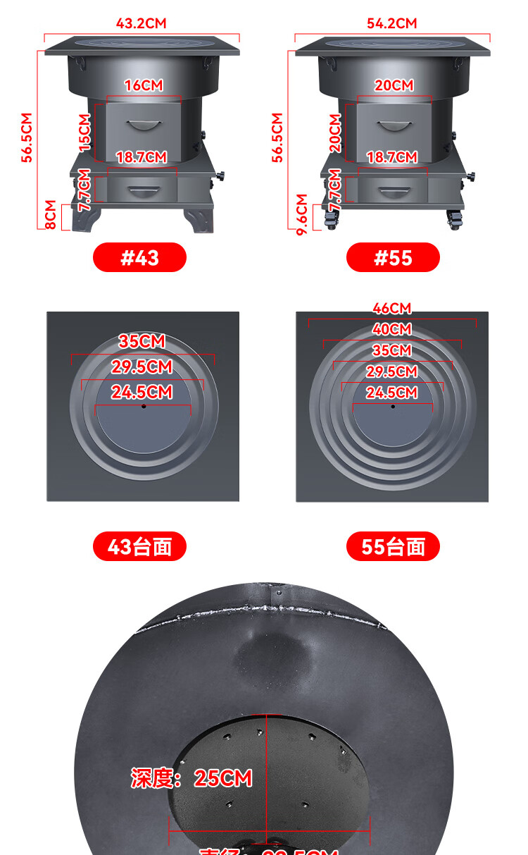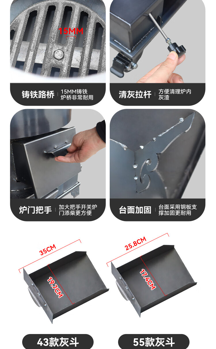 靠森(Kaooseen)取暖炉农村家用气化取暖炉烧木柴煤炭两用特厚大铁锅柴火猛火灶台 55cm炉+配件