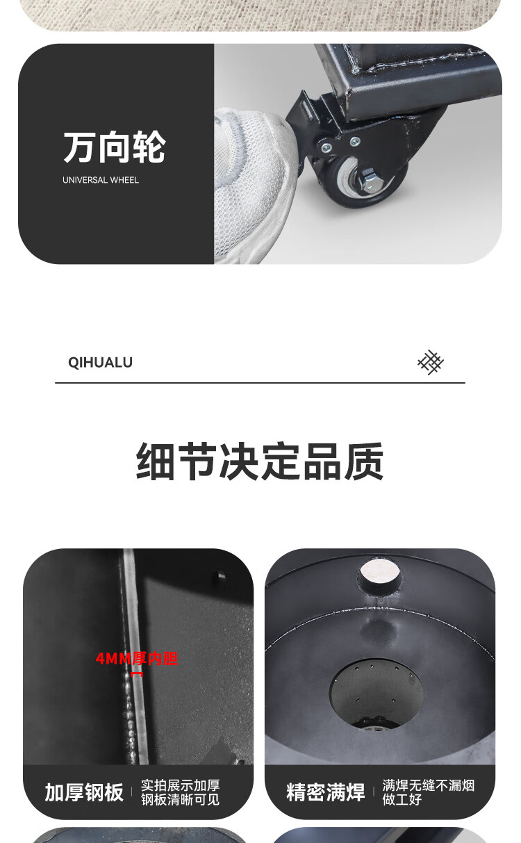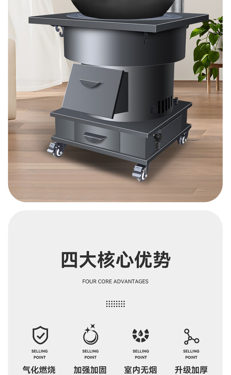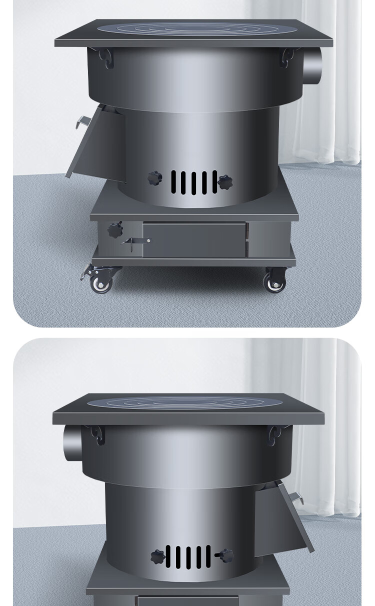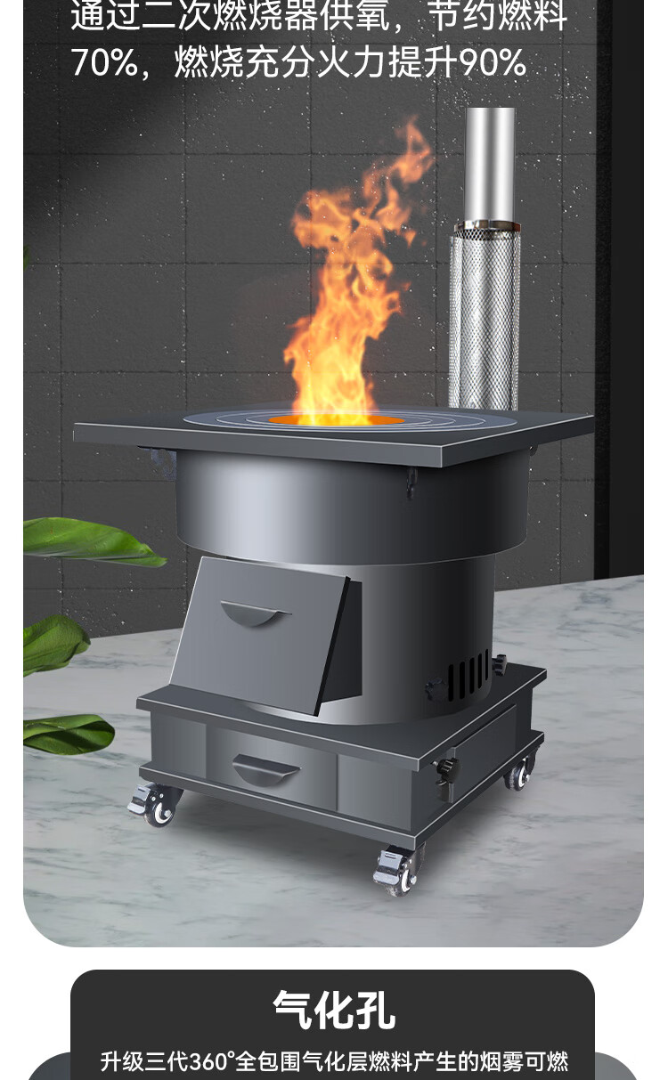 柴煤两用气化取暖炉柴火灶家用烧木柴农村室内无烟移动大锅灶台 气化炉带轮款带4米烟管+2个弯头