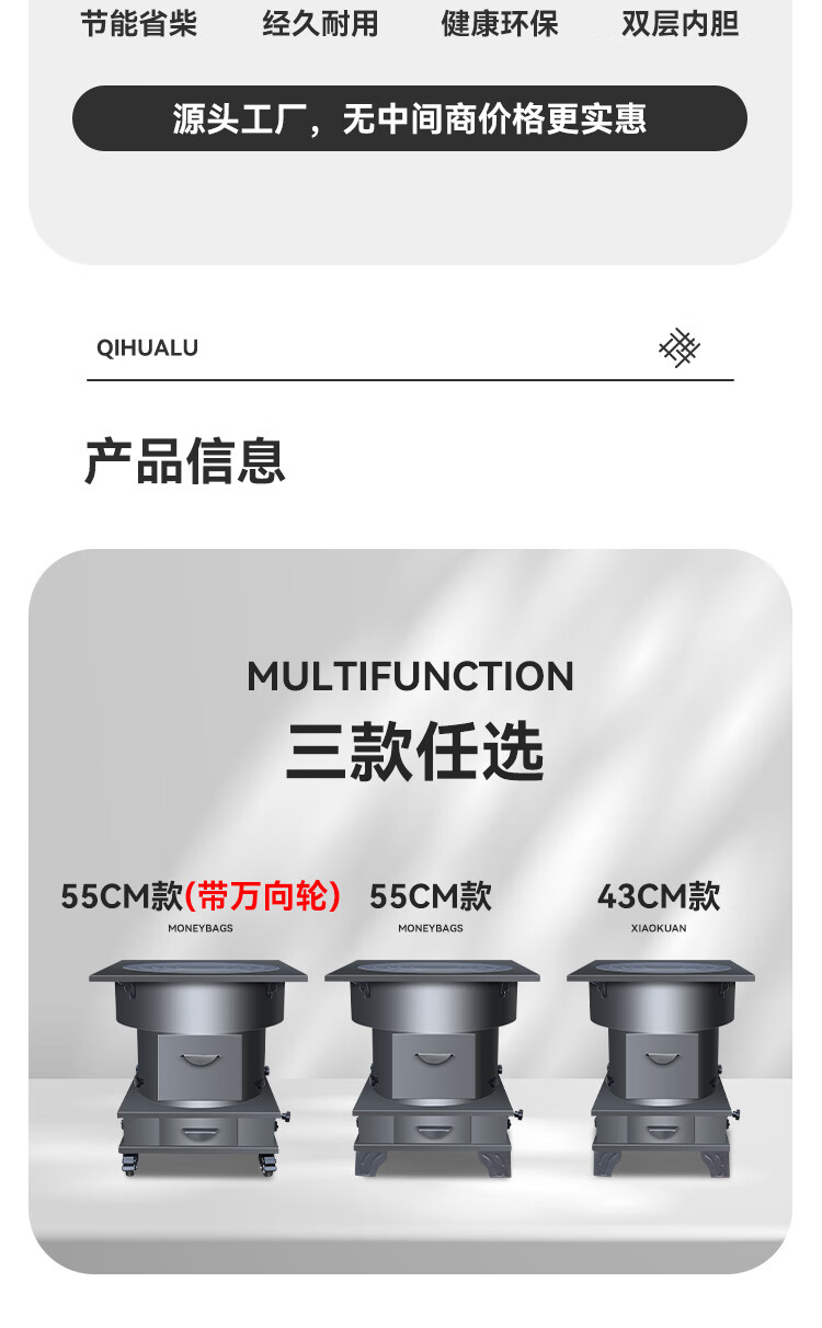 冬季农村家用取暖炉灶清洁环保无烟烤火炉二次燃烧气化炉可烧煤柴 LZ-62长75宽55高62cm