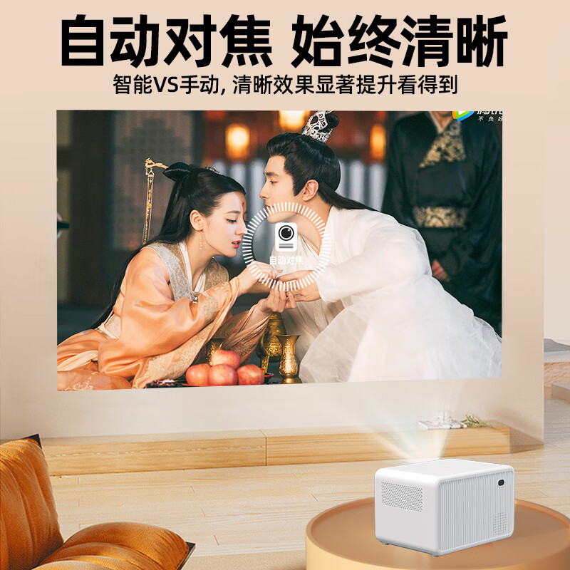 HKMW华为机适用2025新款家用投影超高清短焦手机无线投屏家庭影院宿舍卧室投墙小型便携式自动对 标准版【电视+手机投屏+电动对焦】无礼包