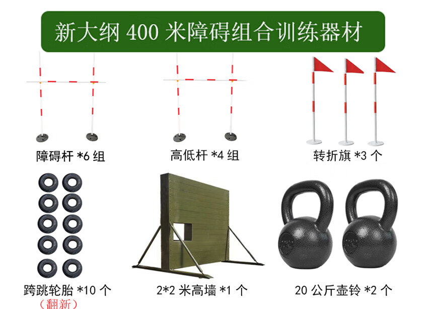 知州智造新大纲400米障碍训练器材轮胎高低杆障碍杆高墙400米组合障碍器材 400米障碍全套女版