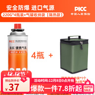 清系户外便携卡式炉防爆气罐液化瓦斯气体燃气罐卡斯炉丁烷气瓶 220g*4+加厚隔热收纳袋军绿色