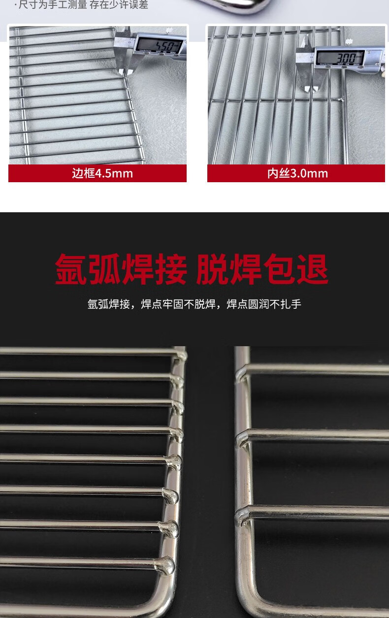304不锈钢烧烤网片 烤炉配件长方形加粗烤架烤肉网户外 烧烤工具 长32宽32--丝粗1.8