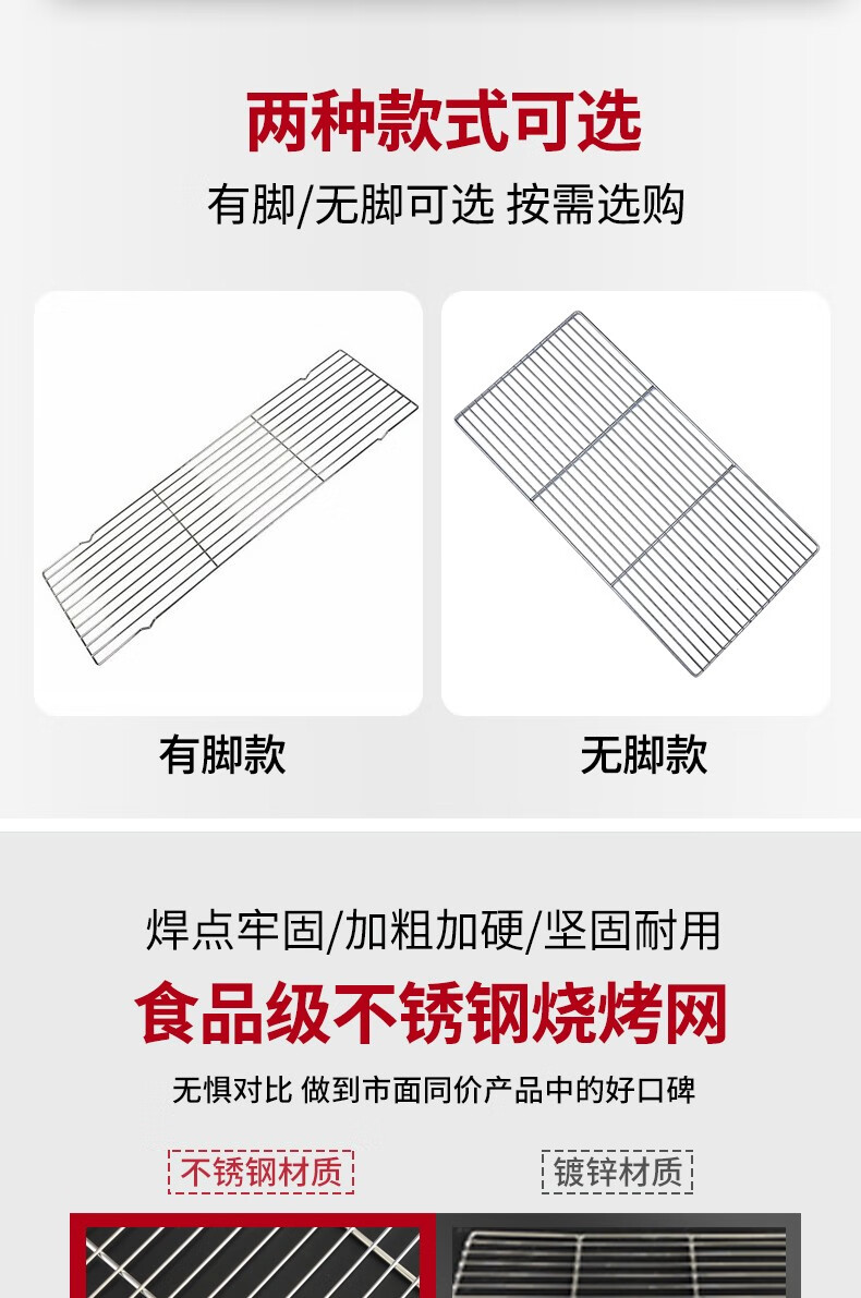 宜时代不锈钢烧烤网加粗长方形烤肉网烤串烘焙网晾网沥水架隔油网凉网 60*40cm带脚烧烤网-不锈钢