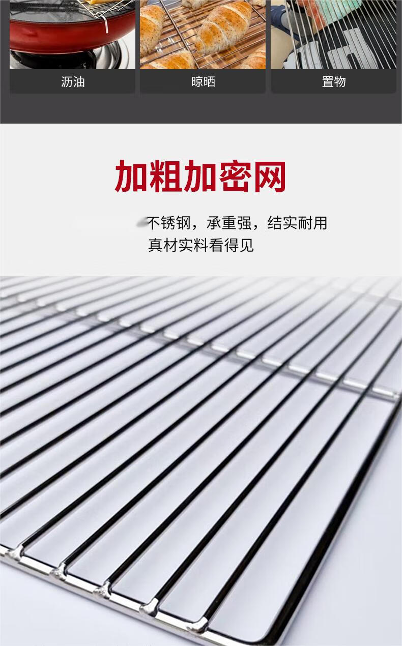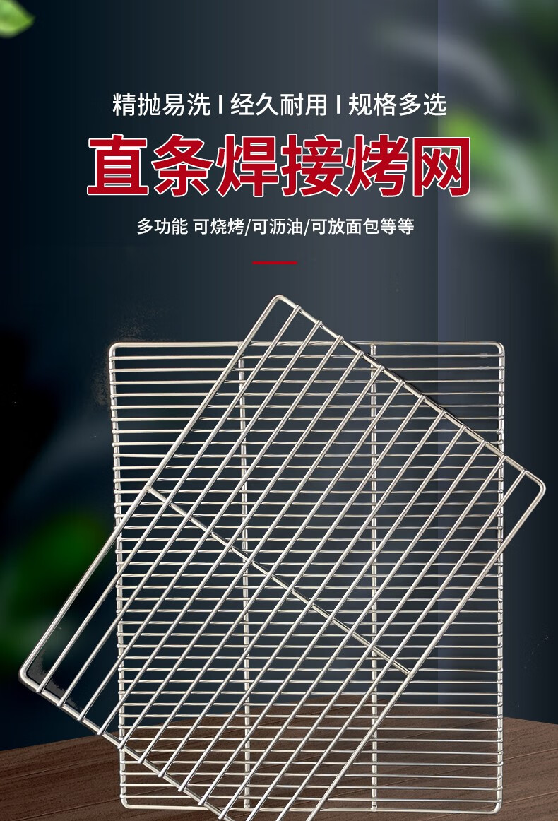 智宙不锈钢304烧烤网架烤箱网架加粗烤肉篦子猪肉架商用烘焙晾晒架网 加粗加密条形平片18*48(送刷子)