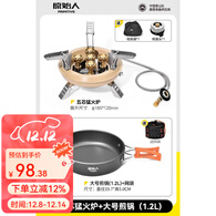 原始人户外炉头便携式卡式炉气化炉野外露营野炊烧烤炉 五芯猛火炉+大号煎锅