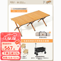 原始人户外折叠桌铝合金蛋卷桌露营桌子野餐桌椅便携式装备野营野炊 露营车套装【120铝桌+月亮椅】