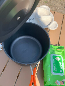 这个露营锅的质量挺不错的,质感轻盈,做工精细,把手不仅做了隔热设计还可以收缩。是居家旅行必备神器。