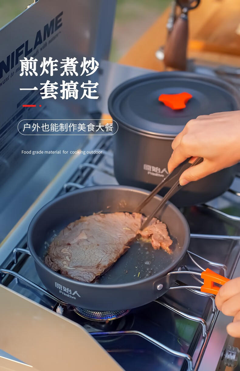 原始人露营炊具户外锅水壶煎锅装备便携野外野营套锅锅具用品 【食品级铝合金】大号煎锅