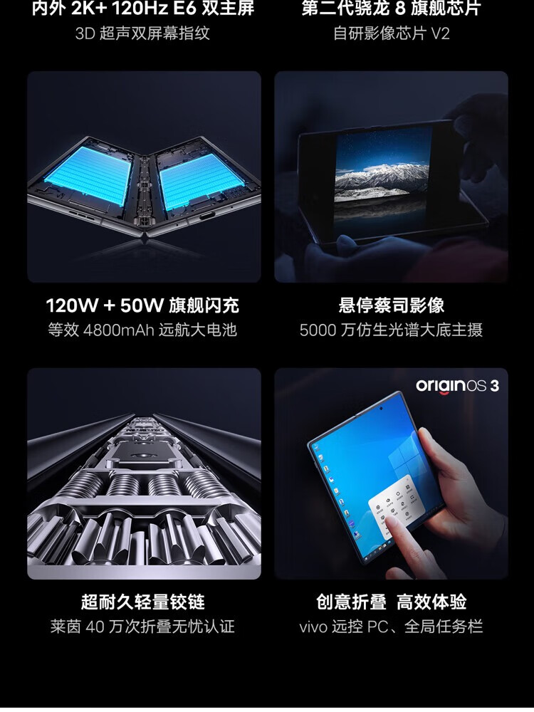 vivoXFold5折叠屏手机超轻薄机身XFold3Pro超巨幕折叠屏手机 Fold3 Pro【轻羽白】 12GB+256GB 赠运费险|详情咨询客服
