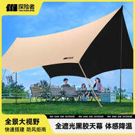 探险者户外天幕露营黑胶天幕遮阳棚八角蝶形天幕春游装备移动雨棚 八角黑胶奶油咖丨约15平-4-12人