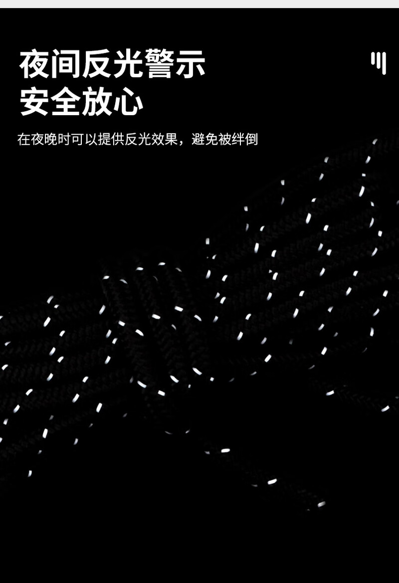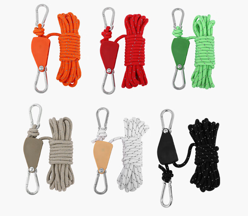 质量不错,绳子挺结实的,用了几次都没啥磨损。反光条在晚上特别显眼,露营时候安全多了。长度也够用,绑帐篷或者晾衣服都行,挺实用的。颜色和描述一样,没色差。收纳起来不占地方,带出去很方便。性价比高。
