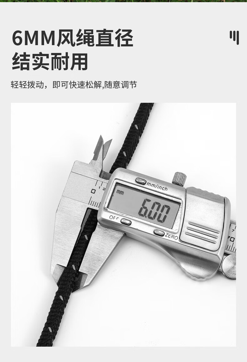 超乎想象,这个小配件真的让露营方便不少!风绳调节起来特别顺手,晚上反光设计也很贴心,再也不用担心被绊倒了。材质结实耐用,安装简单,性价比超高!