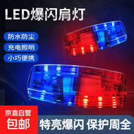 警示爆闪灯肩夹安全车尾灯自行车充电保安红蓝LED肩灯闪光信号灯 (特亮长续航)红蓝无字50小时续航【送数据线】