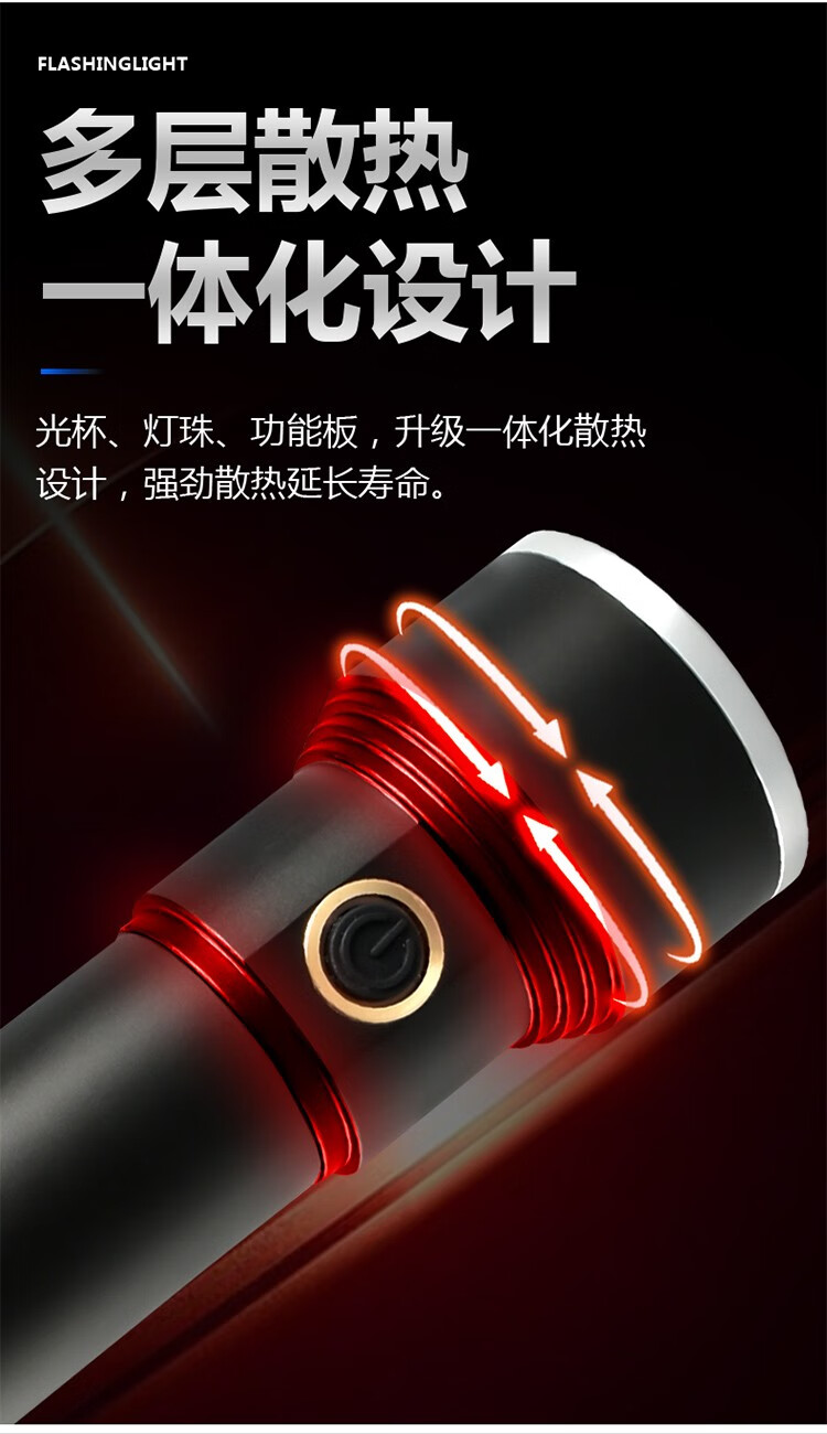 A200赛博探境者双光源可调焦家用户外远泛一体铝合金强光手电 YM-A200(三光源定焦EDC手电筒
