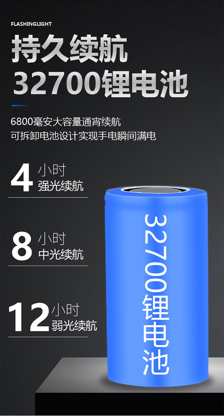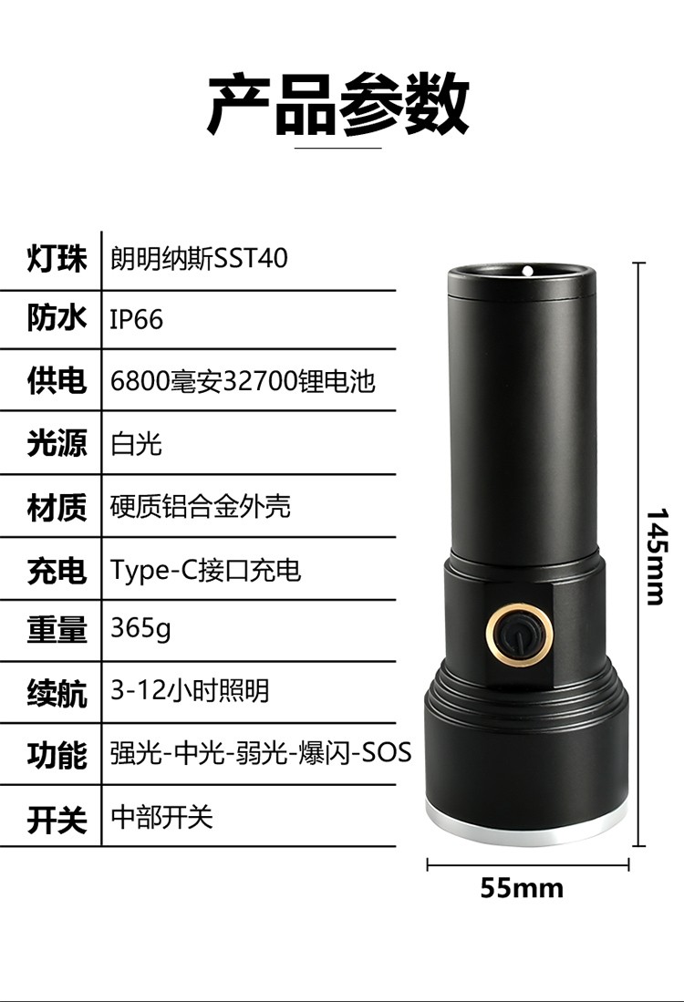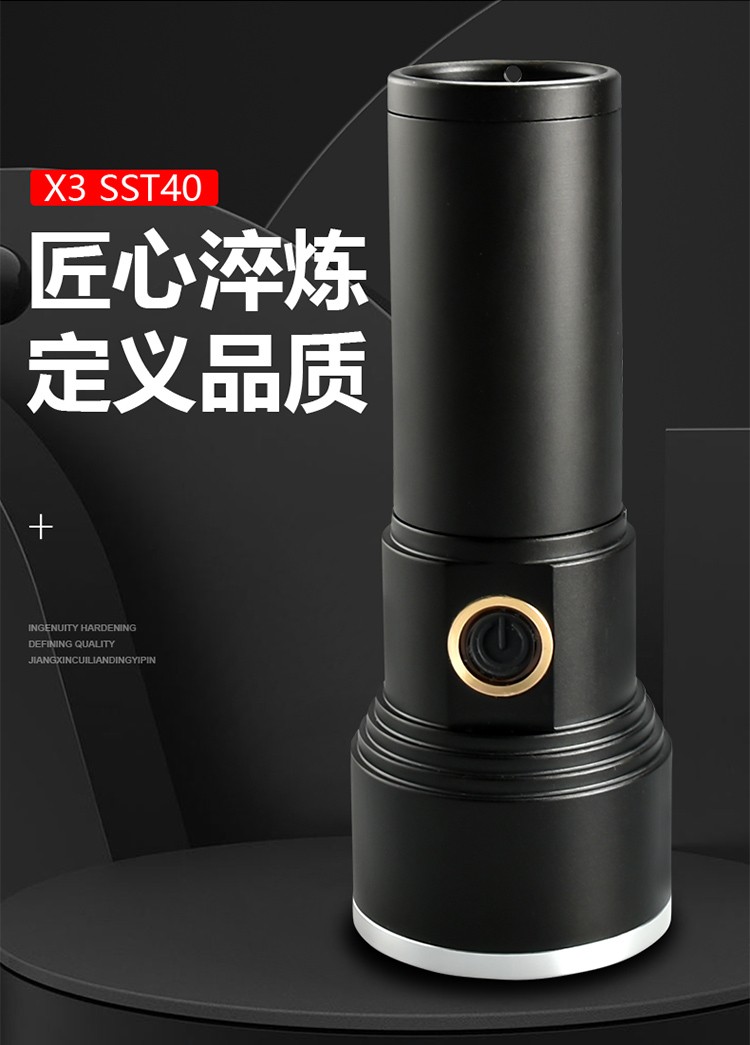 索拉卡 强光手电筒户外充电T40远射LED应急聚光家用超长续航32650手电灯 X9白光1节32700电池