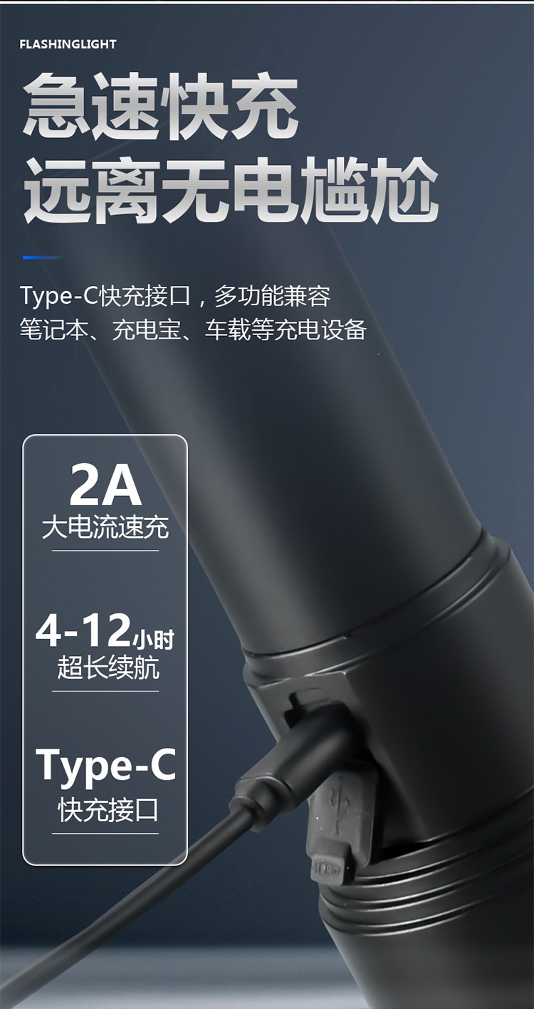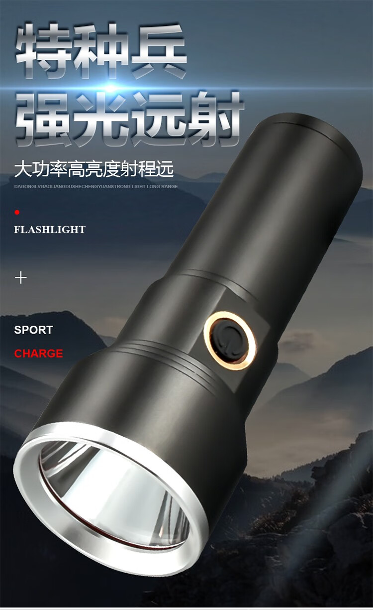 古慕妮金属小型便携式强光超长续航野外生存家用大功率户外爬登山 91A光灯芯-液晶电显-单锂电