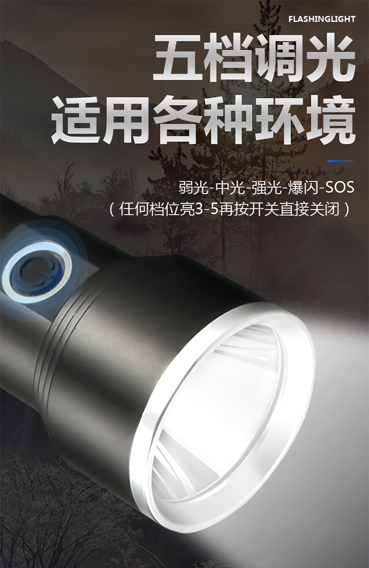 强光和弱光可以随手调节,爆闪需要连击两下,完美分开,功能设计的非常好