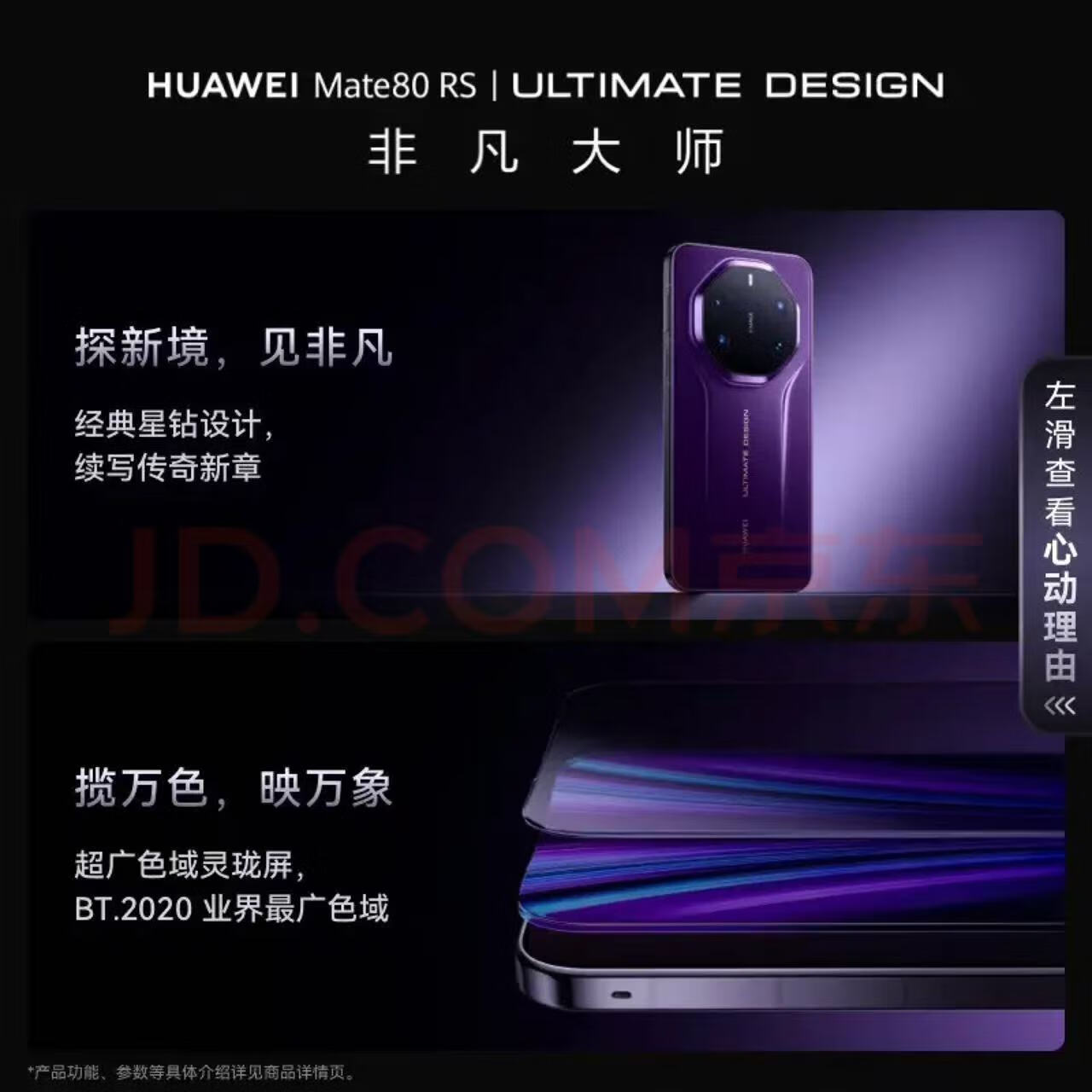 华为(HUAWEI) Mate 80 RS 非凡大师 超广色域灵珑屏高亮钛玄武架构第二代红枫影像直屏鸿蒙手机 槿紫 20GB+512GB
