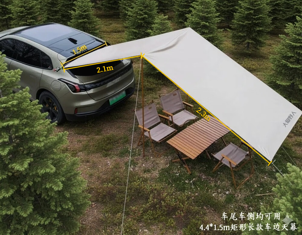 车边天幕质量很棒,材质结实耐用,防晒效果好。与商品描述完全相符,物流速度快,下单没几天就收到了。客服服务周到,性价比超高,很满意这次购物。
