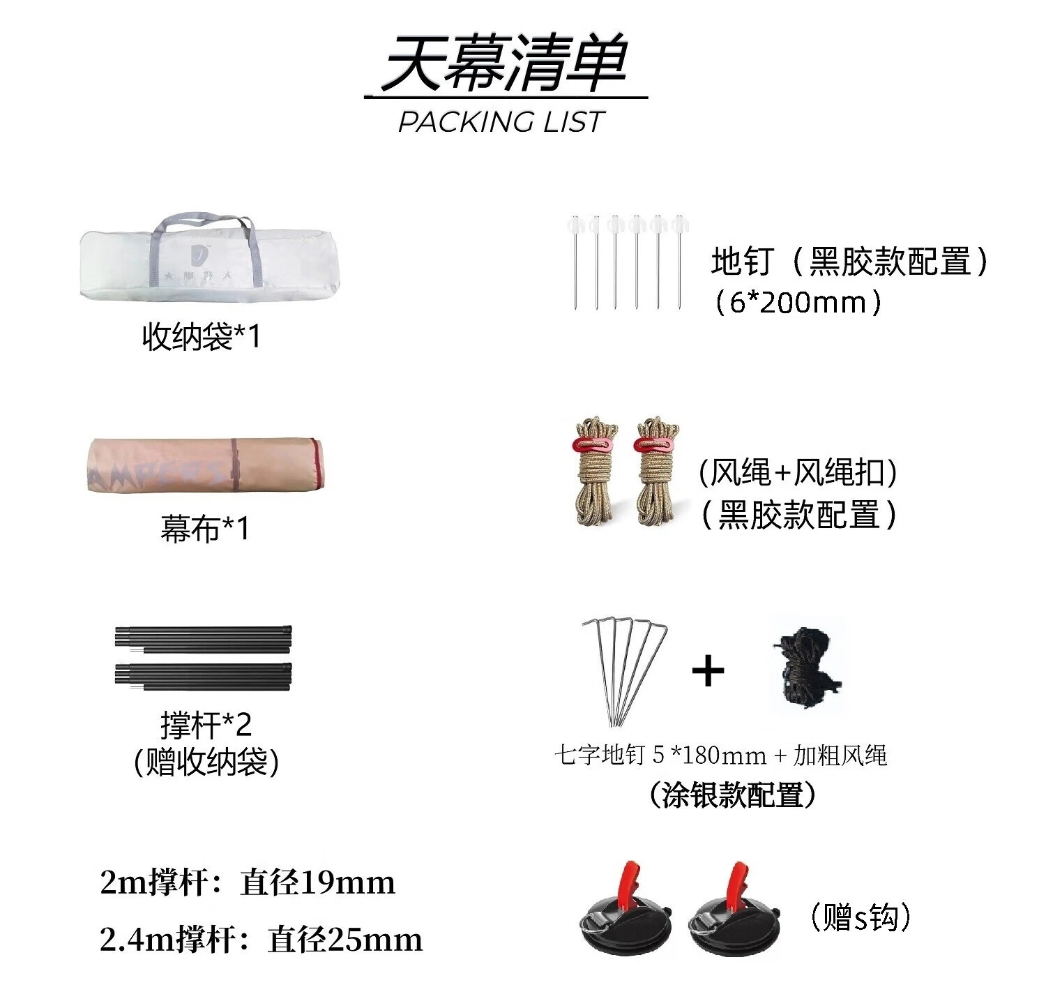 幕布 地钉 风绳 撑杆 吸盘 杆子袋 收纳袋